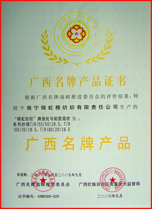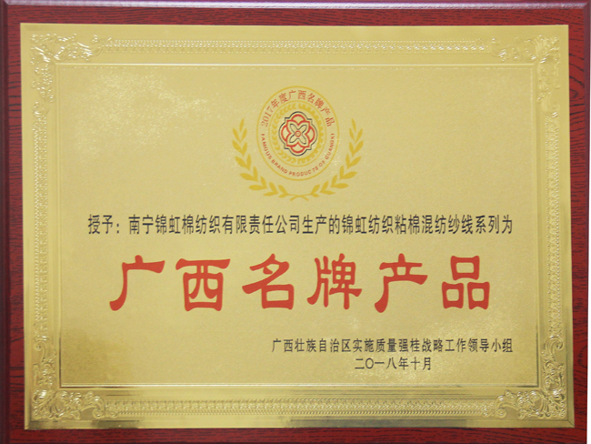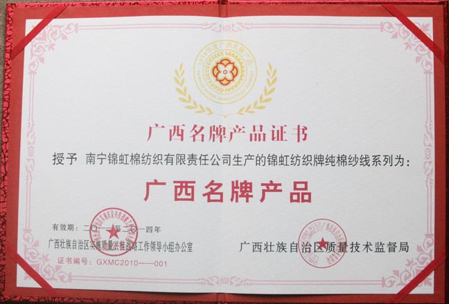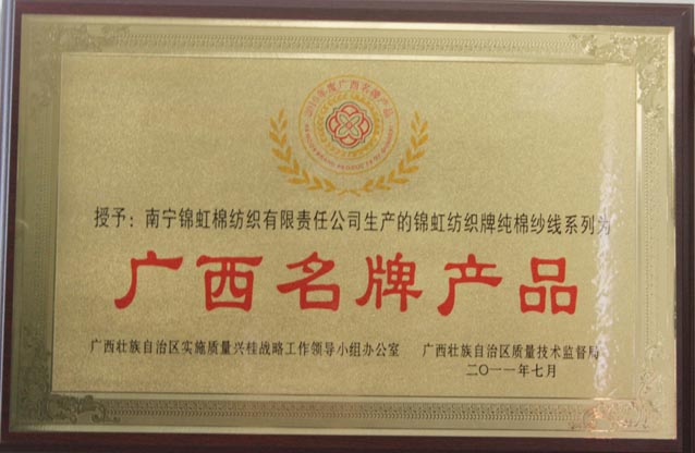 混紡紗線(xiàn)榮獲廣西名牌產(chǎn)品