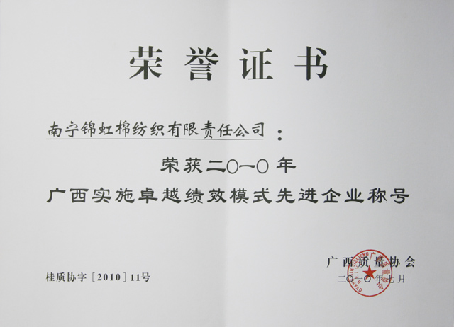 2010廣西卓越績(jī)效模式先進(jìn)企業(yè)