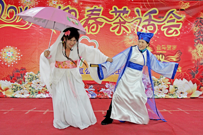 公司員工在迎春茶話(huà)會(huì)上表演幽黙