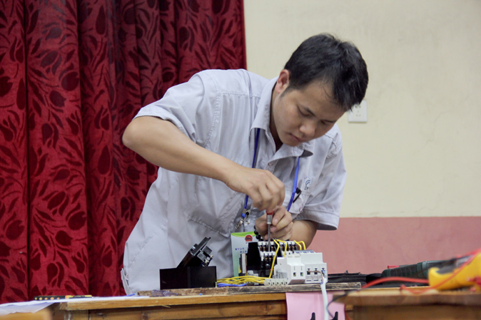 動(dòng)力部門(mén)員工在進(jìn)行電器維俢操作