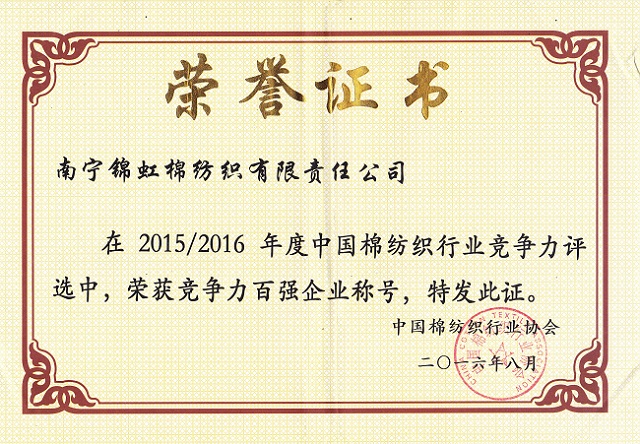2015年-2016年度競(jìng)爭(zhēng)力百?gòu)?qiáng)企業(yè)