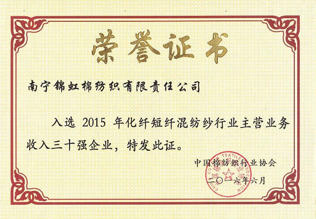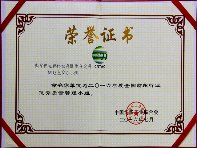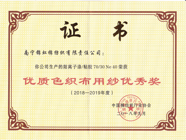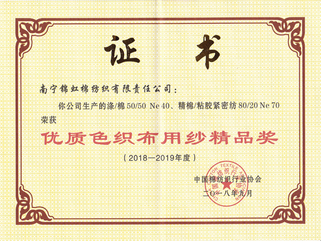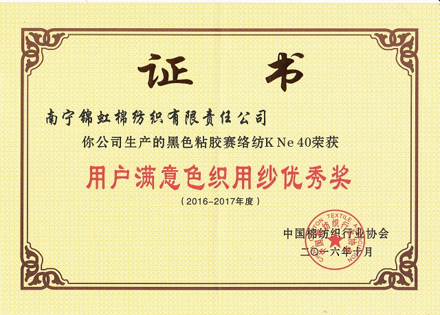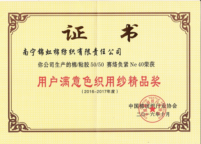 用戶(hù)滿(mǎn)意色織用紗精品獎(jiǎng)