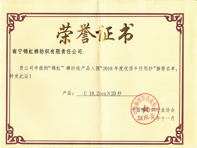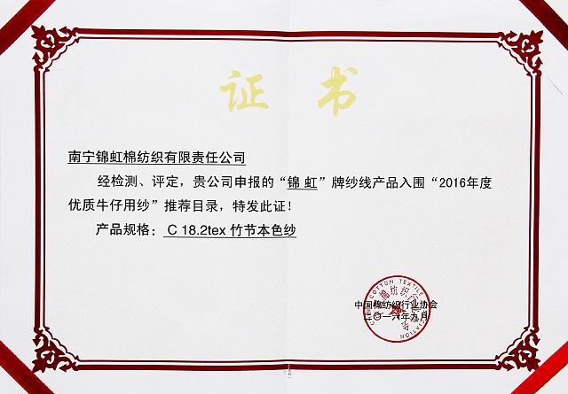 錦虹牌紗線(xiàn)產(chǎn)品入圍2018年度優(yōu)質(zhì)