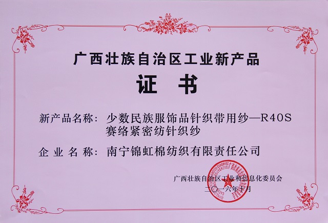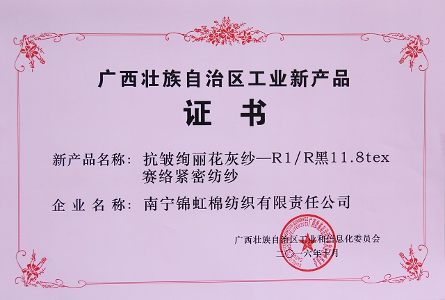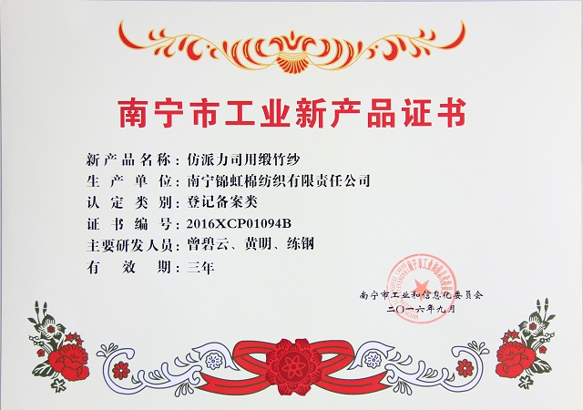 仿派力司用緞竹紗2016新產(chǎn)品證書(shū)