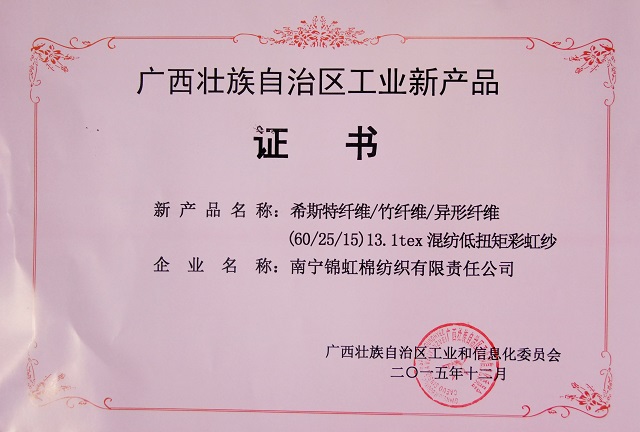 混紡低扭矩彩虹紗獲2016區(qū)新產(chǎn)品