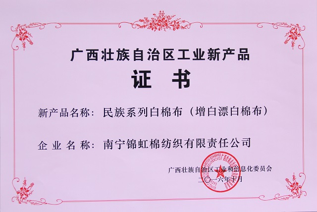 民族系列白棉布獲2016區(qū)新產(chǎn)品獎(jiǎng)