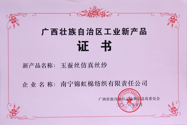 玉蠶絲仿真絲紗貨2016區(qū)新產(chǎn)品獎(jiǎng)