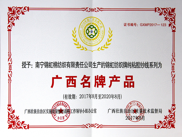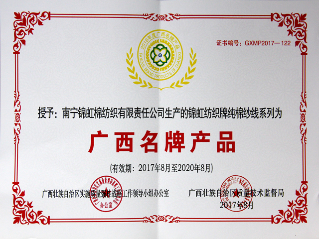 2017年純棉系列榮獲“廣西名牌產(chǎn)