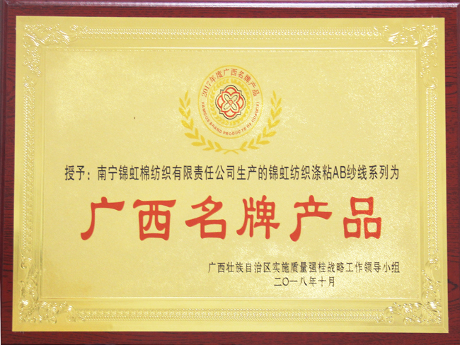 滌粘AB紗線(xiàn)榮獲廣西名牌產(chǎn)品